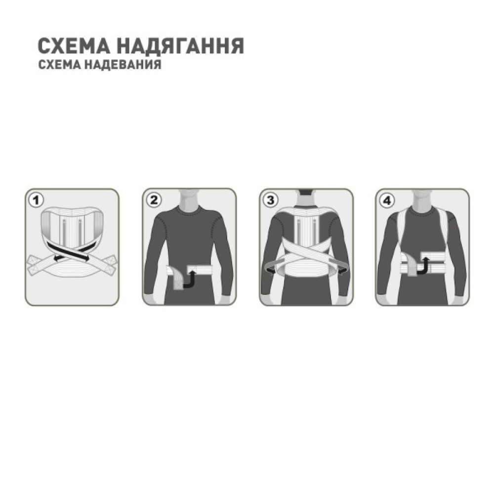 Коректор постави з ребрами жорсткості коригує неправильну поставу, зменшує біль у верхньому відділі спини, спричинений кіфозом, сколіозом, остеопорозом або артритом, а також неправильним положенням хребта та додатковим навантаженням на грудний відділ хребта. Бандаж запобігає деформацій хребта. Еластичні ремені тримають плечі в правильному положенні. Коректор постави рекомендується надягати безпосередньо на спідню білизну. Коректор постави має ступінь фіксації від легкого до сильного, який настроюється знімними металевими та ребрами жорсткості, які моделюються, і ступенем натягу фіксаційних ременів. М'яка спинка та валики під пахвами дають змогу носити бандаж з комфортом.