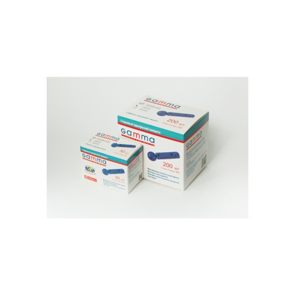 Особливості: мінімальний діаметр голки 30G (0.3 мм) у ланцетах ТМ GAMMA забезпечує безпеку і безболісне проколювання під час вимірювання рівня глюкози у крові; дитячий вік: від 28 днів від дня народження