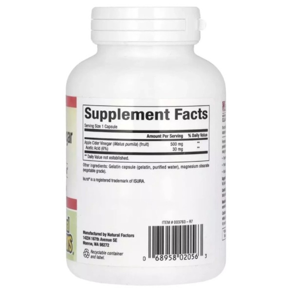Яблучний оцет (ЯО) від Natural Factors, ферментований оцтовою маткою, містить переваги ЯО в капсулі без цукру, що робить його кориснішим для здоров’я, ніж багато інших жувальних мармеладок.