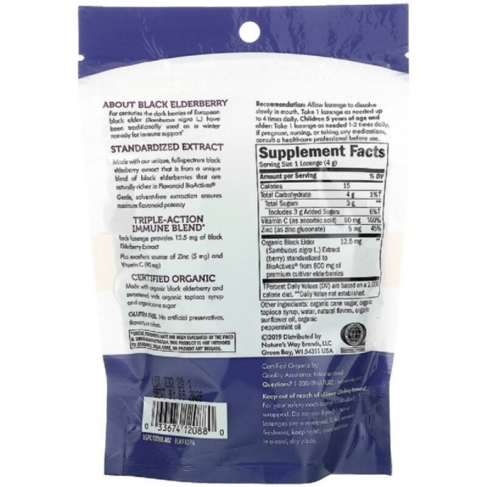 Трави Nature's Way Льодяники бузини з цинком, смак м'яти, Sambucus, Zinc Lozeng (NWY-12088)
