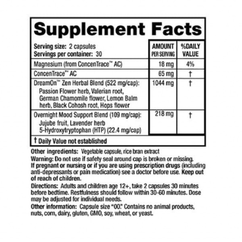 У комплексу DreamOn ™ Zen досить багата формула, заснована на рослинних компонентах.