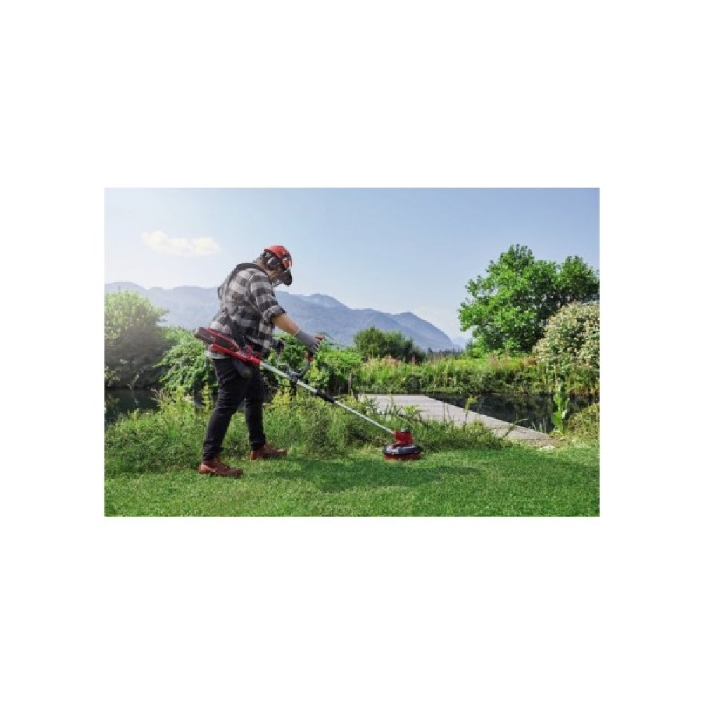 Тример-коса акумуляторний Einhell Agillo 18/200 - це тихий, безпечний і простий у користуванні садовий інструмент з велосипедною рукояткою. Ви можете працювати саме там, де це необхідно, завдяки відсутності кабелю живлення, немає потреби в розетках і кабельних барабанах, повністю відсутній ризик випадкового пошкодження кабелю або можливість спіткнутися про нього. Новий бездротовий акумуляторний триммер-коса Einhell Agillo 18/200 забезпечує відмінні результати скошування завдяки безщітковому двигуну Einhell. Для ефективного косіння триммер-коса Einhell Agillo 18/200 оснащений ножем (ширина різу 20 см) та котушкою з ліскою (ширина різу 30 см), які змінюються при заблокованому шпинделі. Тримером-косою зручно керувати завдяки регульованій подвійній ручці велосипедного типу та високоякісного пояса для комфортної роботи.