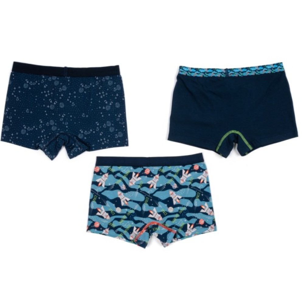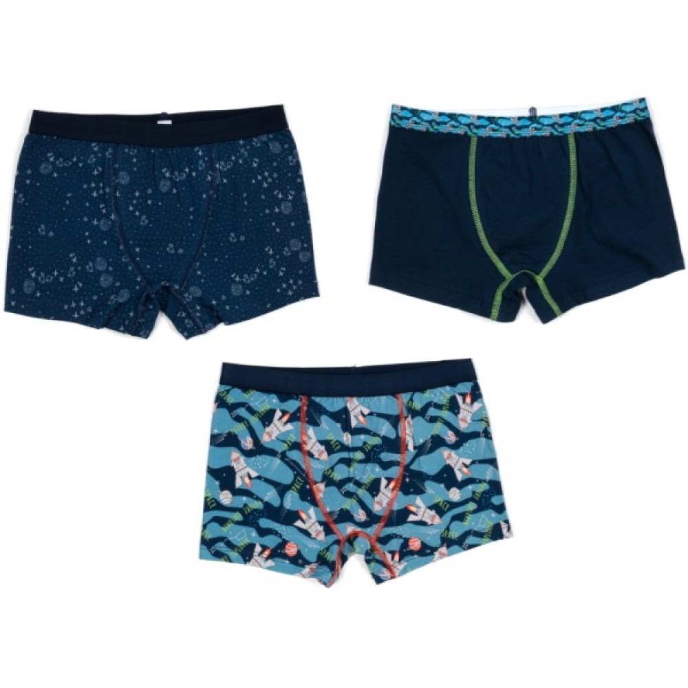 • У комплект входять 3 бавовняних трусиків-шортиками, темно-синього кольору, з малюнками та без. Трусики м'які, приємні на дотик, зі вставочкою та ластовичкою.