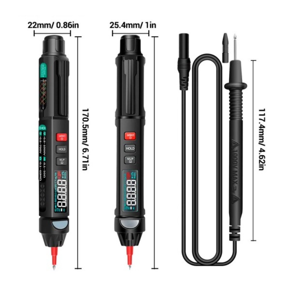 Мультиметр Aneng A3008 PRO - це сучасний цифровий пристрій, що поєднує функції вольтметра і тестера. Особливості цього приладу включають безконтактний індикатор напруги з мультиметром, цифровий дисплей, ліхтарик, звуковий сигнал та контактний щуп. Компактний та зручний у використанні, Aneng A3008 є розумним кишеньковим мультиметром у формі ручки. Він автоматично визначає та вимірює напругу постійного та змінного струму, а також опір, позбавляючи вас необхідності перемикання режимів. Пристрій відрізняється високою точністю вимірювань та функцією автоматичного відключення після 5 хвилин бездіяльності, що сприяє економії енергії.