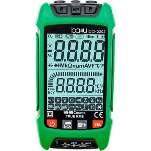 автоматичний вибір діапазонів вимірювань; функція ліхтарика; безконтактне вимірювання напруги (NCV)