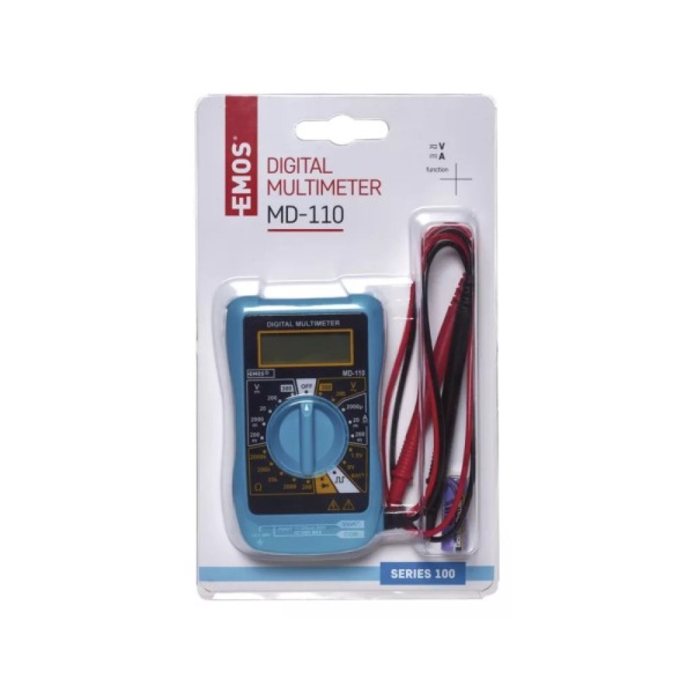 Цифровий мультиметр EMOS M0320 від чеського виробника EMOS - це є устаткування з ряду компактних приладів з 3,5 цифровим дісплеєм, призначених для вимірювання змінного та постійного напруження, постійного струму, опору, тестування діодів. Прилад індикує перевищення вимірюваної межи. Він має функцію автоматичного відключення. Мультиметр має захист від перенапруження та інформує про низький ступінь зарядки батереї