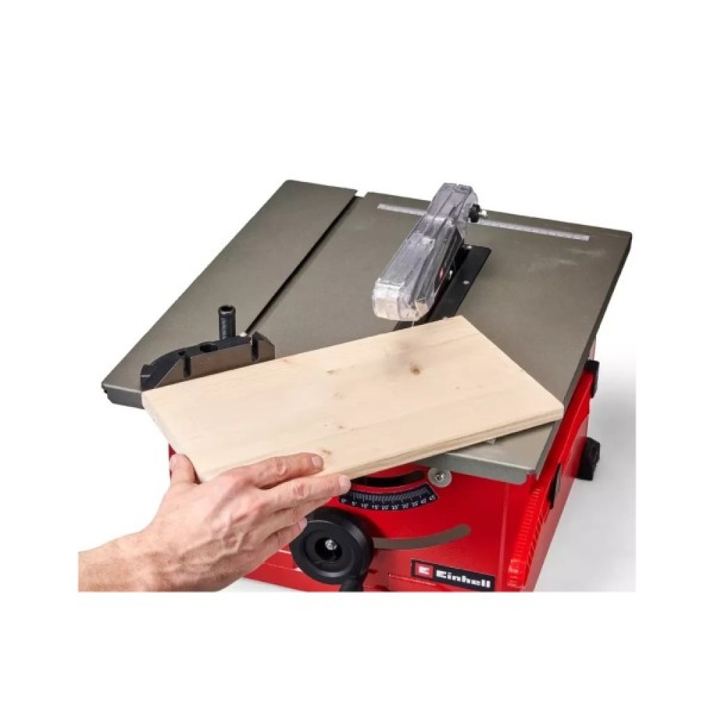Настільна пила Einhell TC-TS 8 - це компактний інструмент для переносного використання як у домашній майстерні, так і на будмайданчику. Завдяки потужності двигуна в 1200 Вт та висоті різу 45 мм ця компактна пилка підходить для роботи з деревом, деревоволокнистими плитами та багатьма іншими матеріалами. Міцна сталева конструкція рами та робочого столу надають настільній пилці Einhell TC-TS 8 міцності та високій стійкості. Пильний диск можна нахиляти до 45°, що у поєднанні з кутовим упором (+/- 45°) дає можливість робити точні косі різи. Для максимальної безпеки під час пиляння можна регулювати висоту пильного диска. Настільна пилка оснащена паралельним упором із затискачами з обох боків. Щоб підтримувати чистоту робочої зони, у корпус вбудовано пристрій для видалення стружки 36 мм. Корпус включає кронштейни для кріплення паралельного упору, кутового упору та штовхача, що дозволяє безпечно транспортувати пилку. Пильне полотно з твердосплавними напайками, що входить в комплект, забезпечує швидке і чисте різання.