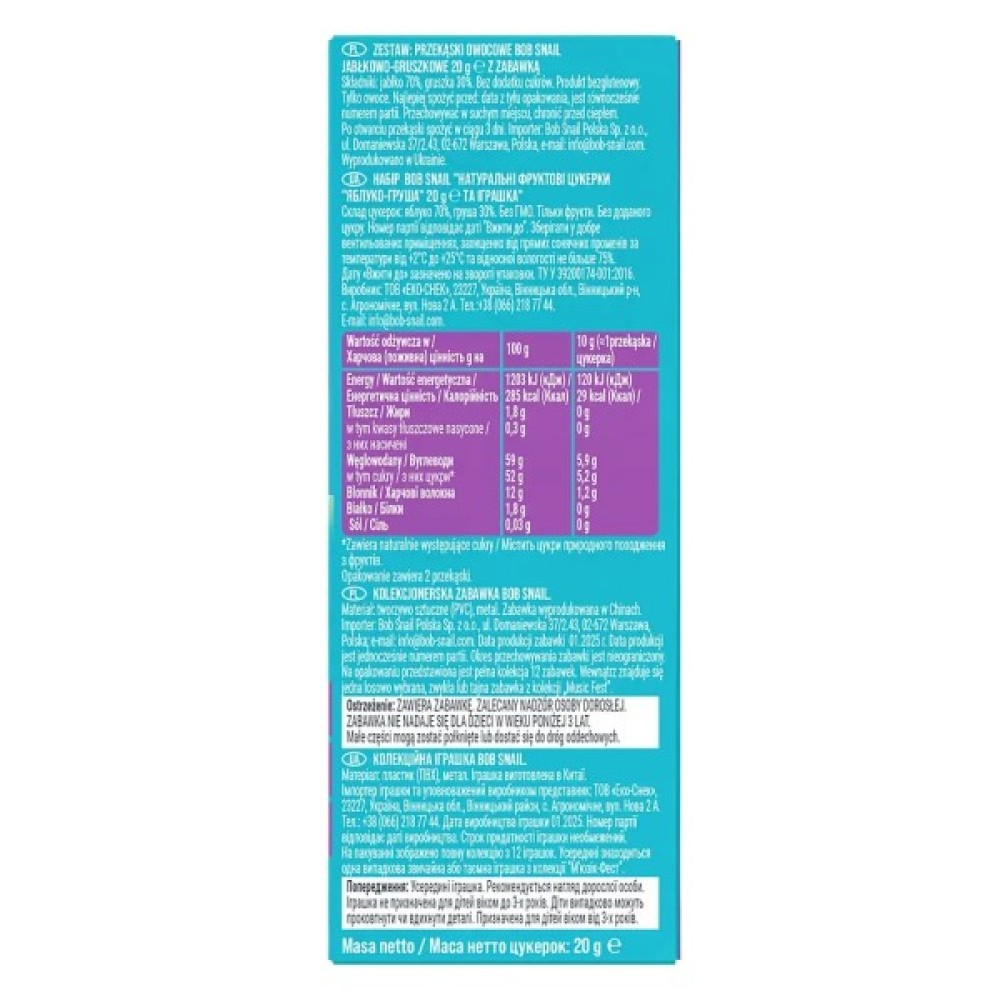 Цукерка Bob Snail Равлик Боб набір Яблуко-груша з іграшкою 20 г (4820219342748)