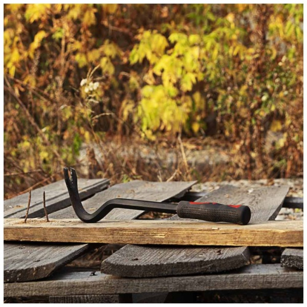 Цвяходер двокомпонентна ручка 300x14мм Sigma (4324421) застосовується для видалення цвяхів, будівельних скоб, демонтажу будівельних матеріалів, віконних і дверних прорізів і інших видів робіт. Шестигранний профіль брухту виготовлений з високоякісної кованої сталі, що пройшла загартування. Двокомпонентна ручка сприяє більш комфортній роботі. Покритий порошковою фарбою, що забезпечує антикорозійну дію.