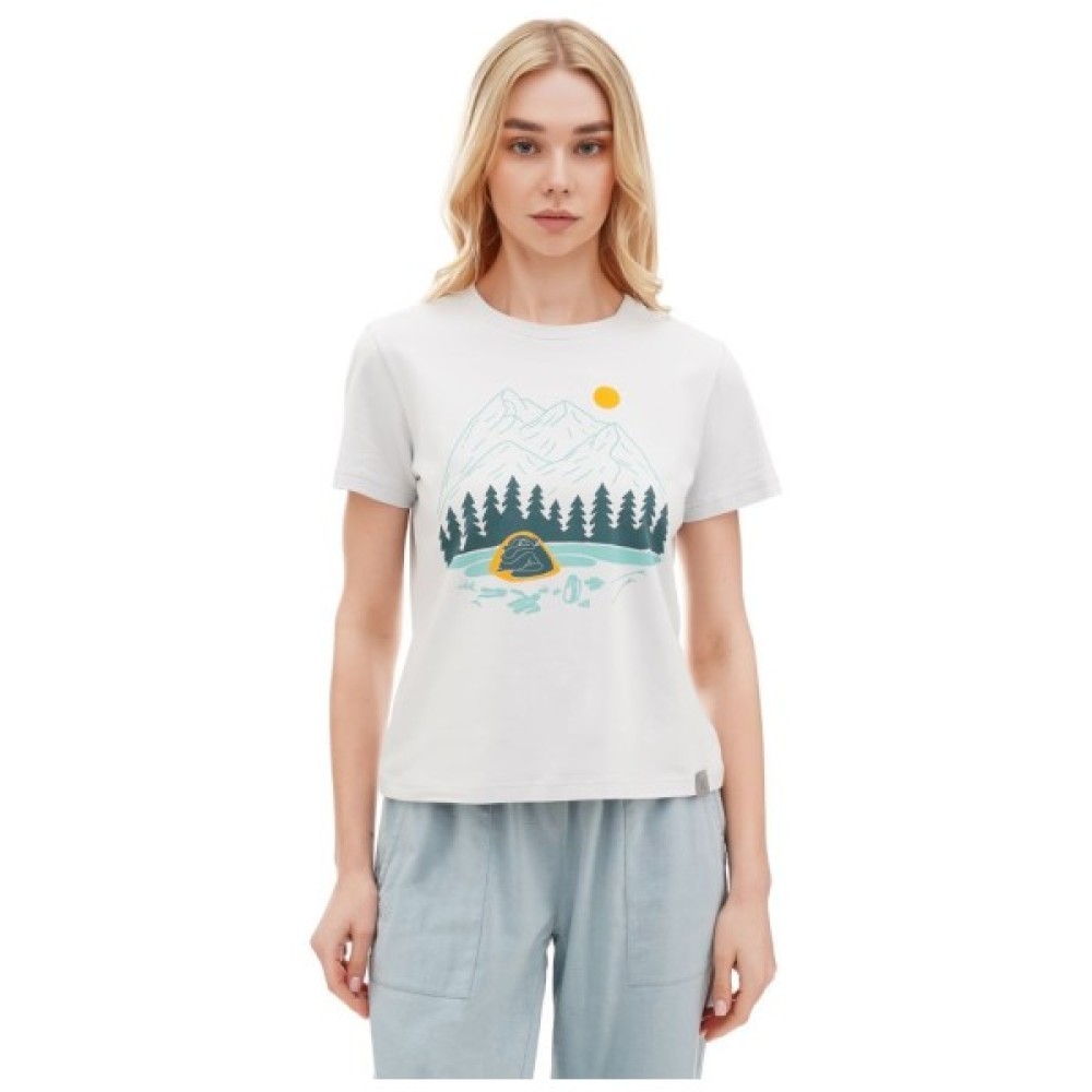 Turbat Romantyka 2 Wmn — футболка класичного крою з романтичним принтом про гори. Передає атмосферу ночівлі в наметі, і нагадує про твої ночівлі серед гір.