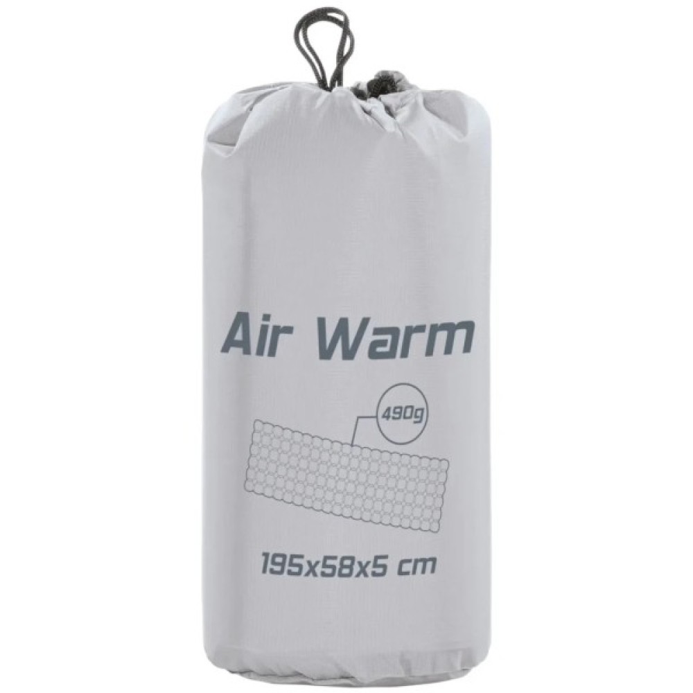 Ferrino Air Warm Mat Grey (78248OII) - трисезонний надувний килимок, що має вбудований клапан підкачування. Насос для надування йде в комплекті (його можна використовувати в якості чохла для зберігання). Цей міцний килимок невеликого об’єму, виготовлений із нейлону Ріпстоп, надлегкий (лише 490 г). Спеціальна конструкція з алюмінізованою плівкою з внутрішньої сторони покращує термостійкість килимка, що робить його придатним для використання протягом трьох сезонів. Численні роздільні камери, заповнені повітрям, повторюють контури вашого тіла, забезпечуючи максимально комфортний сон.