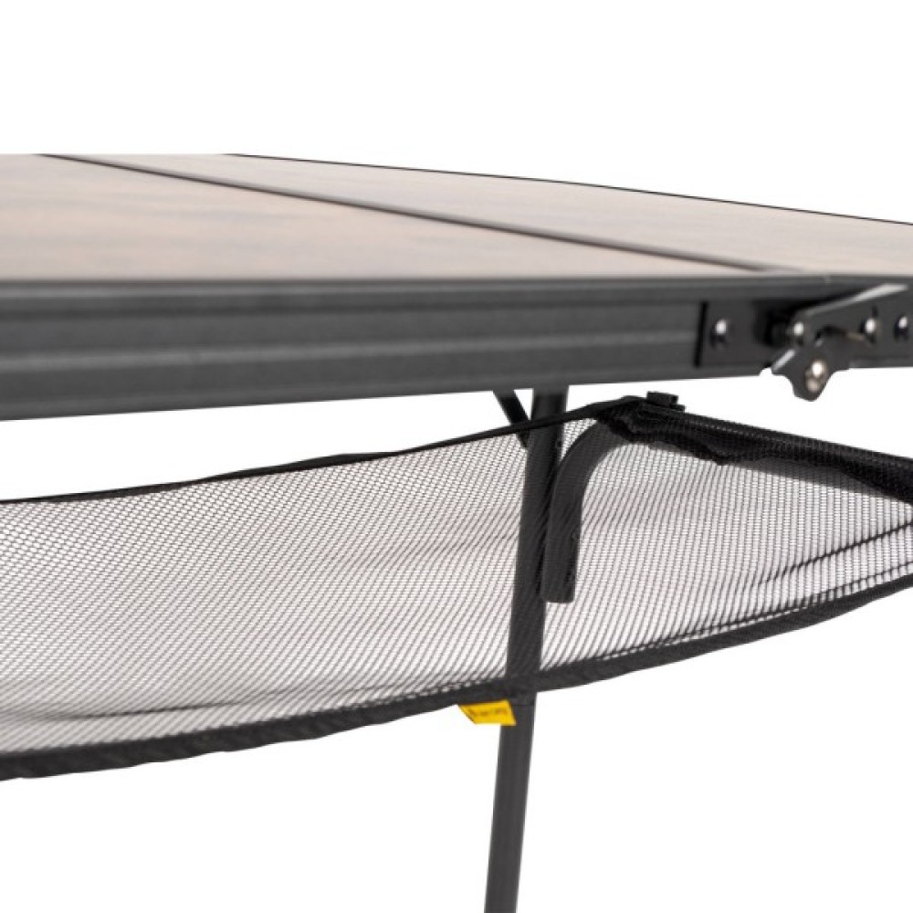 Стильний алюмінієвий стіл Bo-Camp Decatur 90x60 cm має привабливий зовнішній вигляд не в останню чергу завдяки стільниці, виконаній у кольорі під дерево. Це один із найвищих кемпінгових столів. При цьому ніжки столу регулюються по 4 рівням висоти (35/50/67/81 см). Ніжки столу можна відрегулювати на нерівній поверхні за допомогою гвинтів. Крім того, стіл можна дуже компактно зберігати і переносити у вигляді кейса, завдяки знімним ніжкам, складаній стільниці і ручці. Крім того, стіл оснащений знімною сіткою, яка знаходиться під стільницею.