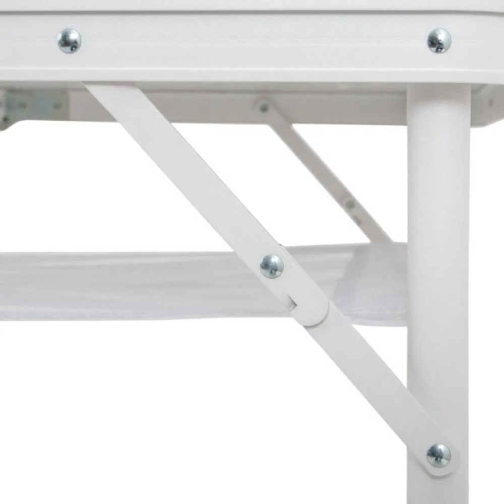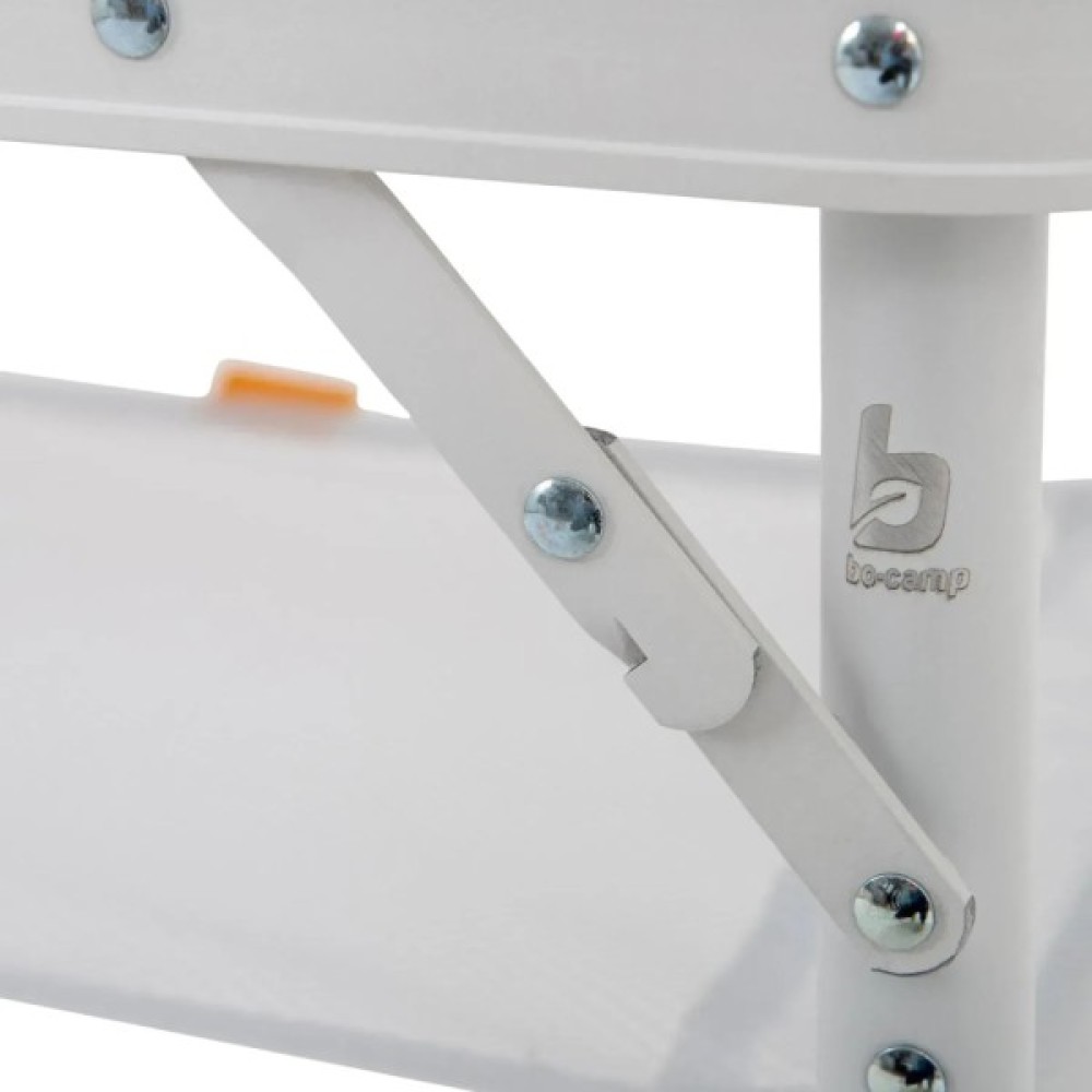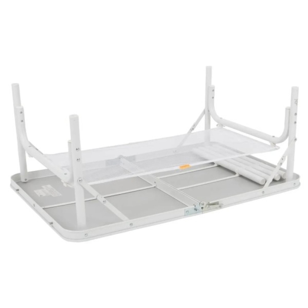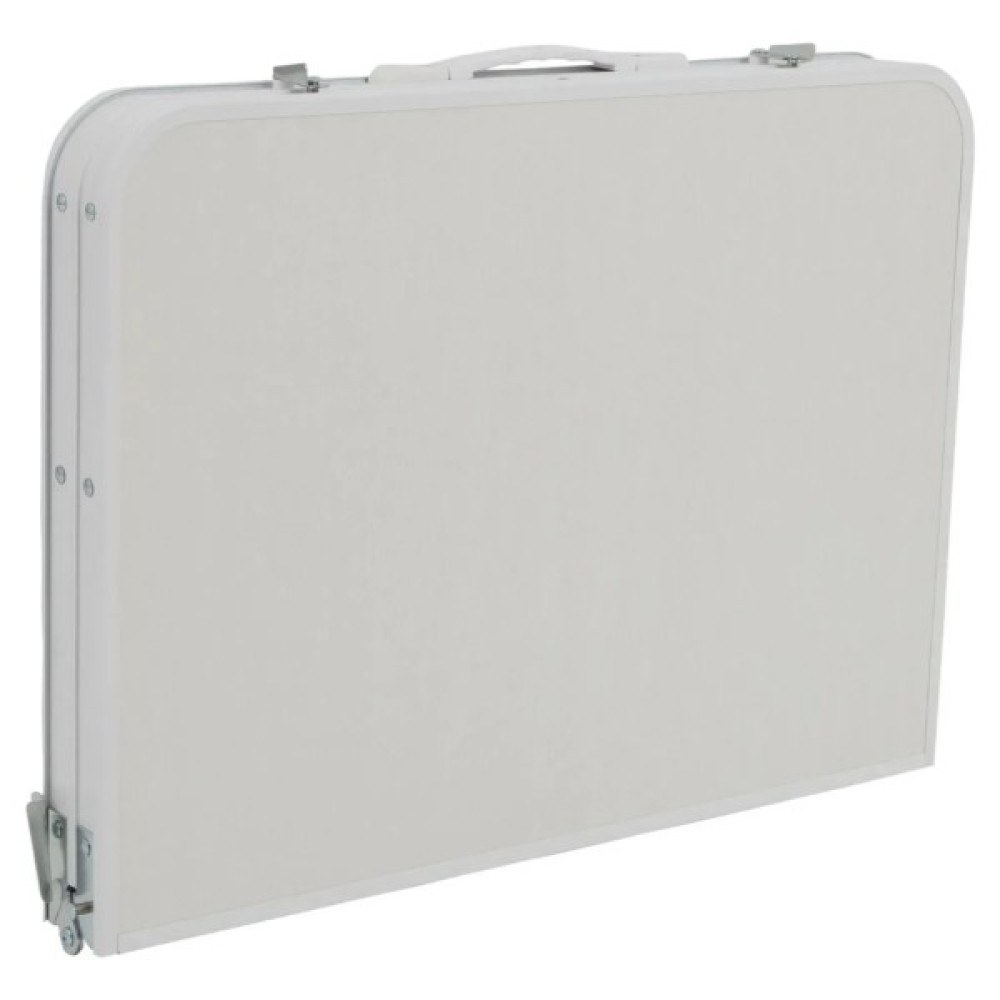 Ніжки з точним гвинтовим регулюванням легко виставляються навіть на нерівній поверхні. Стіл має складану стільницю та знімні ніжки, завдяки чому компактно складається у форму валізки (всього 60x45x7 см). Під стільницею передбачено сітчасту полицю для зберігання речей, а зручна ручка дозволяє легко переносити стіл.