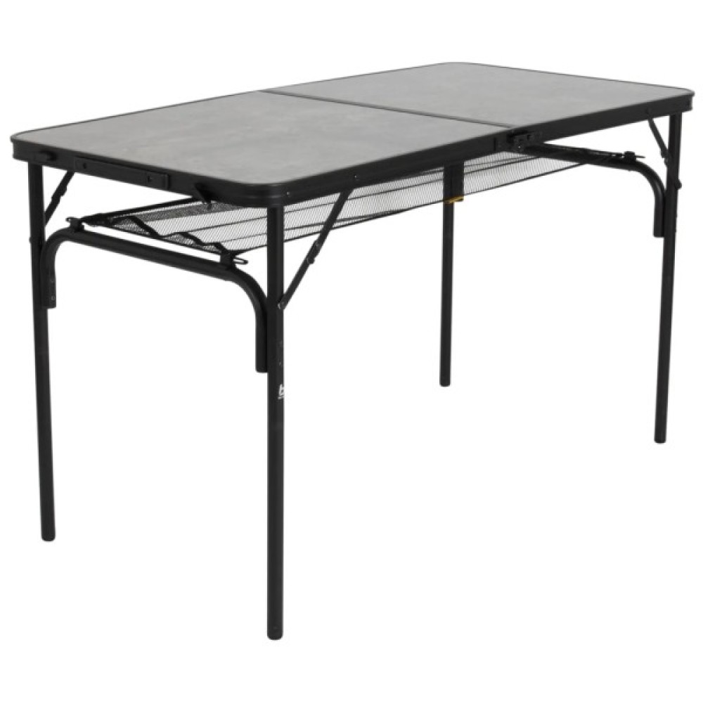 Стильний алюмінієвий стіл Bo-Camp Northgate 120x60 cm має привабливий зовнішній вигляд, фарбований алюмінієвий корпус із стільницею, виконаною у кольорі під камінь. Це повнорозмірний кемпінговий стіл для компанії з 6-8 осіб з можливістю встановлення двох рівнів висоти - 37 та 70 см. Ніжки столу можна відрегулювати на нерівній поверхні за допомогою регулювальних гвинтів. Крім того, стіл можна дуже компактно зберігати і переносити у вигляді кейса, завдяки знімним ніжкам, складеній стільниці і ручці. Крім того, стіл оснащений знімною сіткою, яка знаходиться під стільницею і слугує в якості легкої полички для продуктів та посуду.