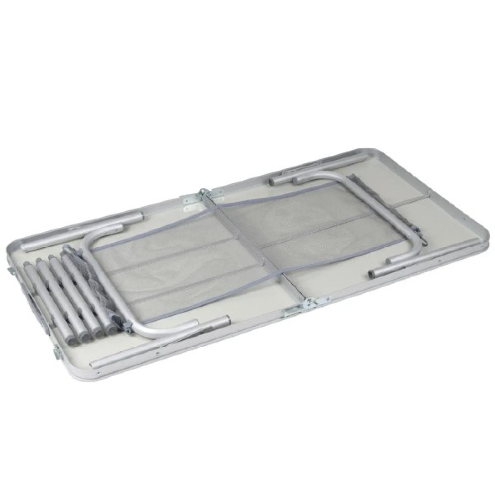 Маючи загалом стандартну висоту і ширину, ця модель вирізняється подовшеною стільницю. А головне Bo-Camp Premium 120x60 cm Grey з колекції Industrial має термо- і вологостійку стільницю і стане незамінним супутником вашого відпочинку в садочку, на дачі чи на природі. Розмір стільниці дозволяє комфортно розмістити за ним від 6 до 8 людей, а сітка під стільницею допоможе не завантажувати поверхню речами. Корпус столу, виконаний з алюмінію, легко складається, а розбірні телескопічні ніжки столу регулюються в двох рівнях (36/70 см). Ніжки також можна відрегулювати на нерівній поверхні за допомогою гвинтів.