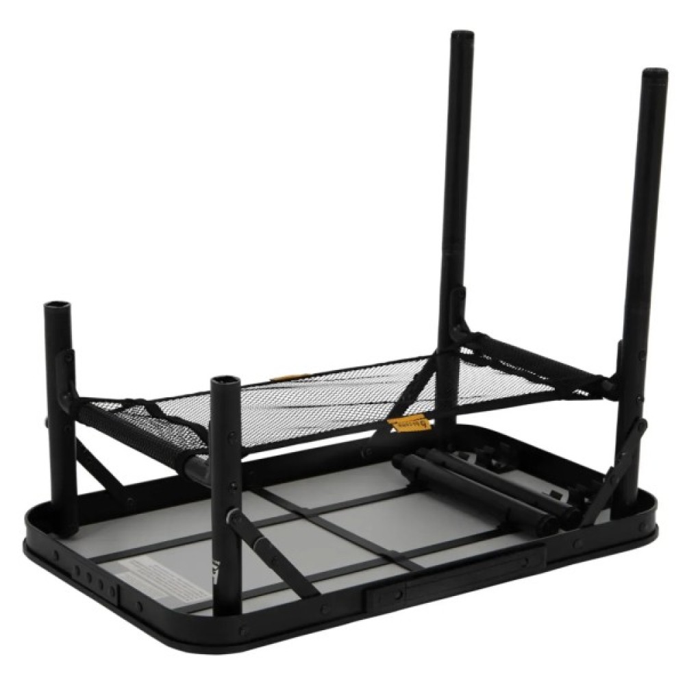 Конструкція дозволяє легко зняти ніжки для транспортування, а вбудована ручка та компактні розміри роблять його ідеальним для подорожей. Під стільницею передбачена сітка для зберігання дрібних речей — посуду, серветок чи гаджетів.