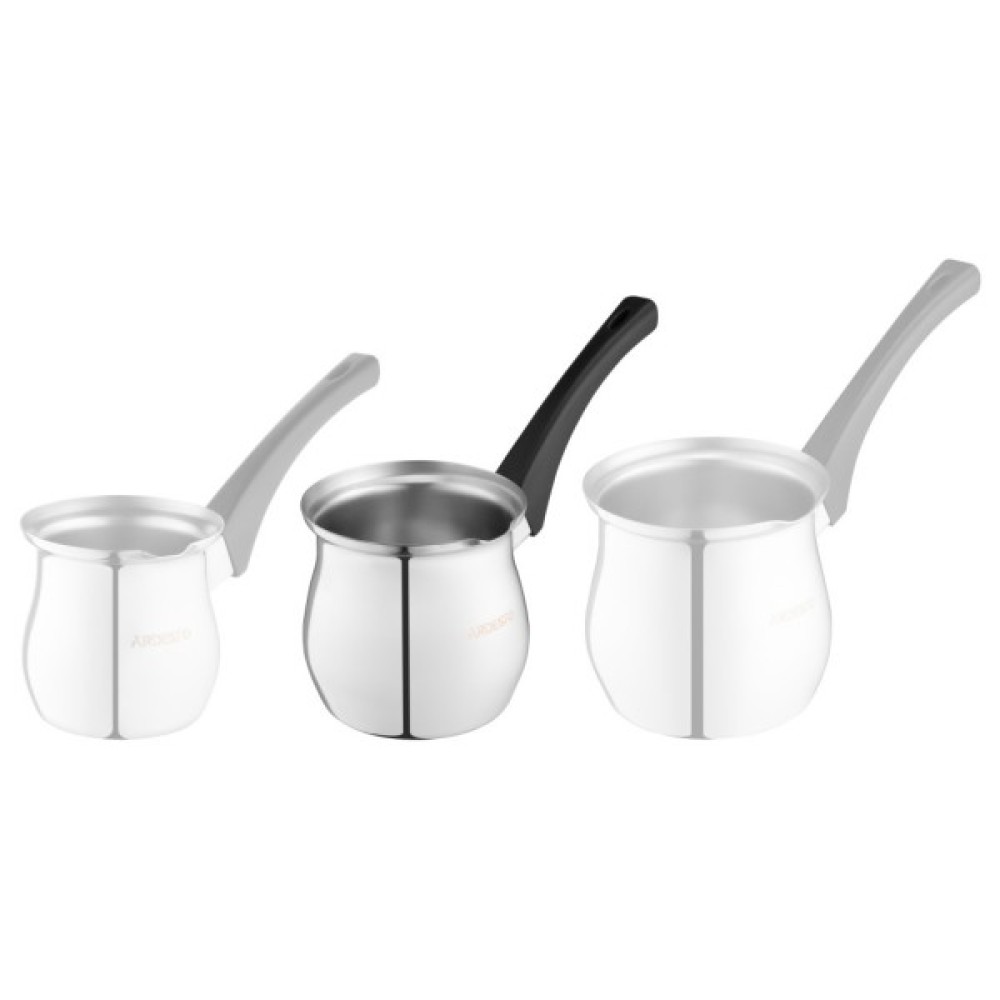 Турка серії BLACK MARS виготовлена з нержавіючої сталі, ручка з бакеліта. Турка сумісна з усіма видами плит, окрім індукційних. Для очищення можна використовувати посудомийну машину.