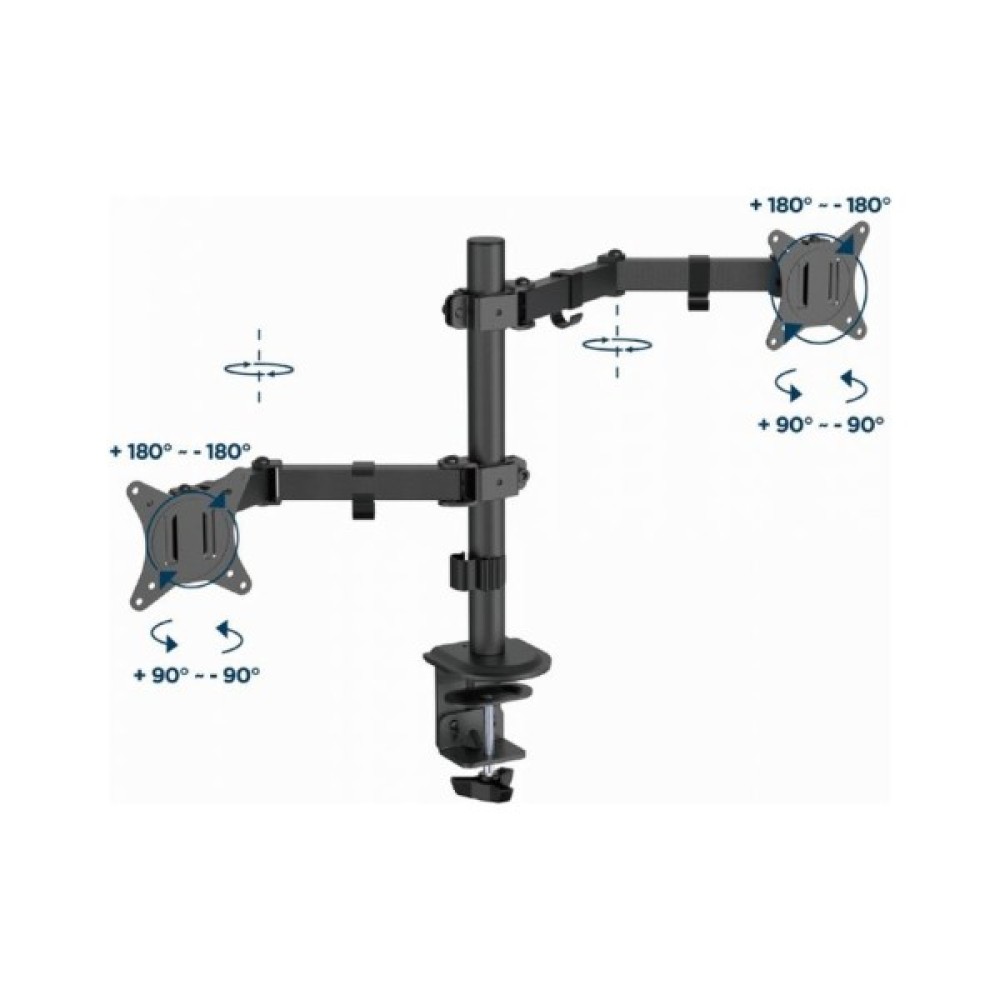 Кронштейн Gembird MA-D2-03 — ваш ідеальний партнер в організації робочого простору. Цей поворотно-похилий кронштейн розроблений, щоб забезпечити максимально комфортне налаштування робочого місця, ніж будь-коли раніше. За допомогою Gembird MA-D2-03 ви можете легко маніпулювати двома моніторами, що є ідеальним рішенням для користувачів, які цінують ефективність і зручність.