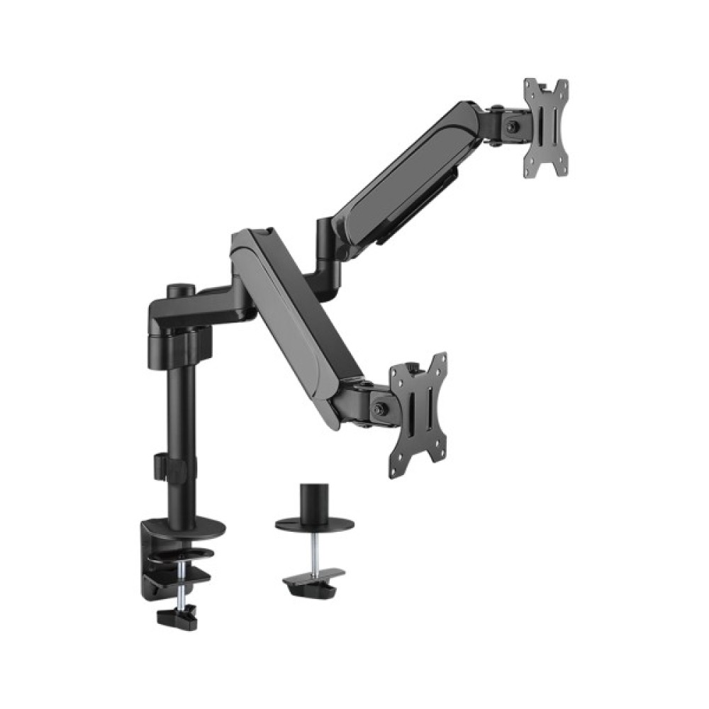 Кронштейн HiSmart HS083182 — це незамінний аксесуар для тих, хто цінує організованість та комфорт у робочому середовищі. Завдяки своїй міцній конструкції з високоміцної сталі, він пропонує надійну підтримку одразу для двох моніторів. Цей кронштейн не лише допомагає звільнити ваше робоче місце, але й сприяє підвищенню продуктивності, дозволяючи розмістити екран на оптимальному для вас рівні.