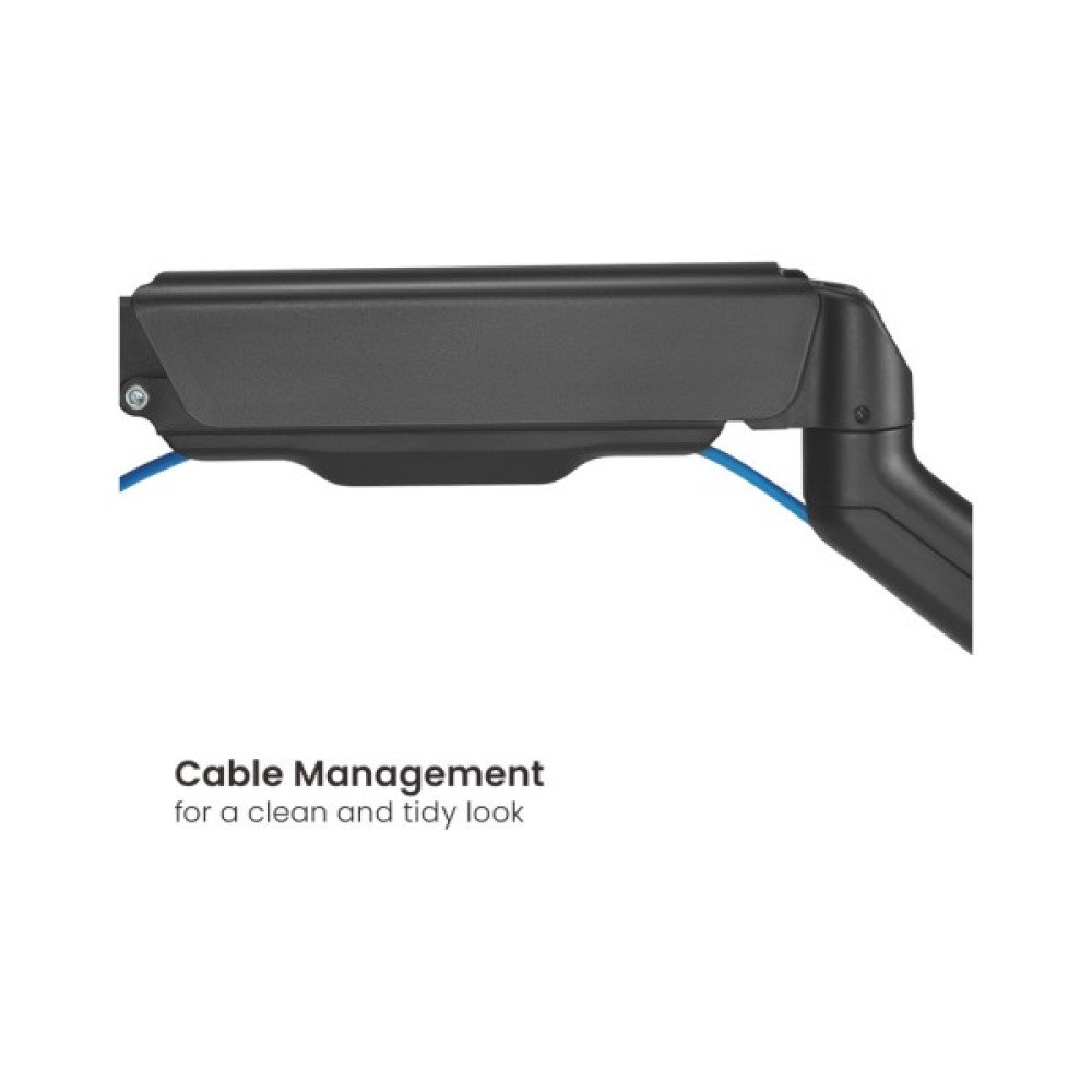 Особливістю HiSmart HS083182 є вбудована система кабель-менеджменту, яка забезпечує зручність, організованість та естетичний вигляд вашого робочого простору. Зручний та продуманий дизайн дозволяє виконувати різні варіанти встановлення — використовуючи затискач або кріплення через отвір під дроти. Це робить монтаж універсальним для різних типів стільниць товщиною від 10 до 85 мм для затискача та від 10 до 40 мм для отвору.
