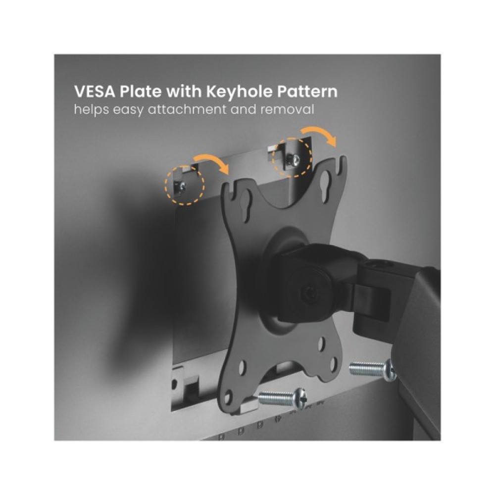 Однією з ключових переваг HiSmart HS083182 є його поворотно-похилий механізм, що комбінується з чотирма ступенями свободи. Ви можете нахиляти монітори в діапазоні від -35° до +35° і повертати їх на 90° в будь-який бік. Забезпечуючи найкращий кут перегляду при зміні орієнтації з горизонтальної на вертикальну, він також оснащений VESA-пластинами зі стандартами 75 x 75 та 100 x 100, що дозволяє швидко і легко встановлювати монітори діагоналлю від 17 до 32 дюймів.
