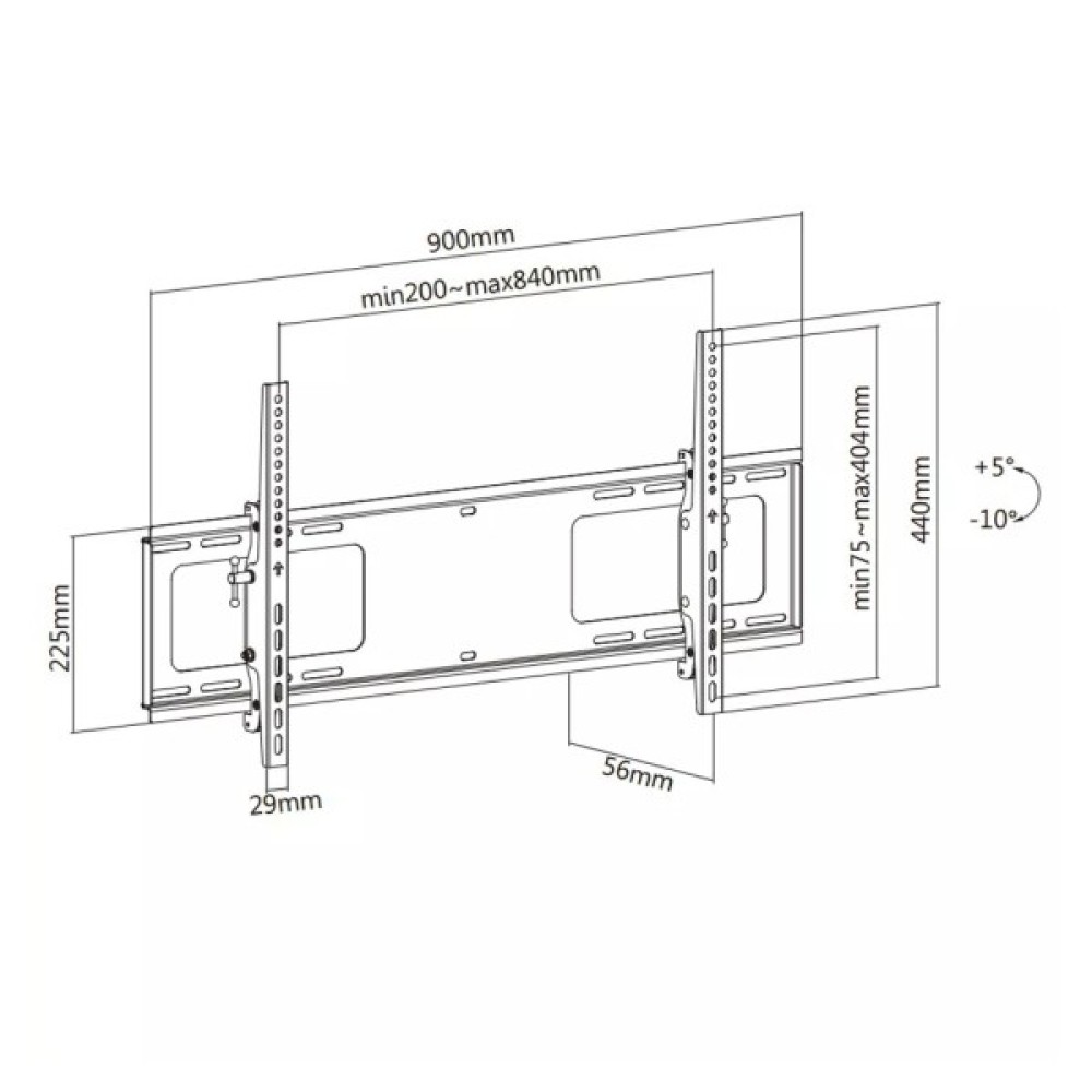 Інсталяція кронштейна проводиться на стіну, і він може підтримувати телевізори різних розмірів, починаючи від 37" до 70". Він відповідає різним стандартам VESA, таким як 100 x 100, 200 x 200, 400 x 400, 600 x 400 тощо, що робить його універсальним рішенням для більшості сучасних телевізорів. За стабільність і надійність кронштейна відповідає його металева конструкція, здатна витримувати навантаження до 75 кг.