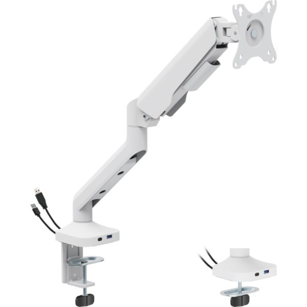 Особливості з регулюванням по висоті; для кріплення вигнутих екранів; з прихованим укладанням дротів; обертання: ±180°; з USB-концентратором; з регулюванням глибини; з портом USB-A; з портом USB-С