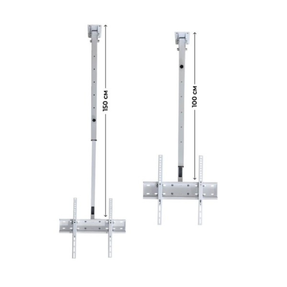 Кронштейн відзначається високою якістю виготовлення завдяки використаному матеріалу — металу. Це гарантує його стабільність та довговічність, що дозволяє вам бути впевненими в безпеці вашого телевізора. Встановлюється на стелю, що означає економію простору в приміщенні та підвищений комфорт перегляду.