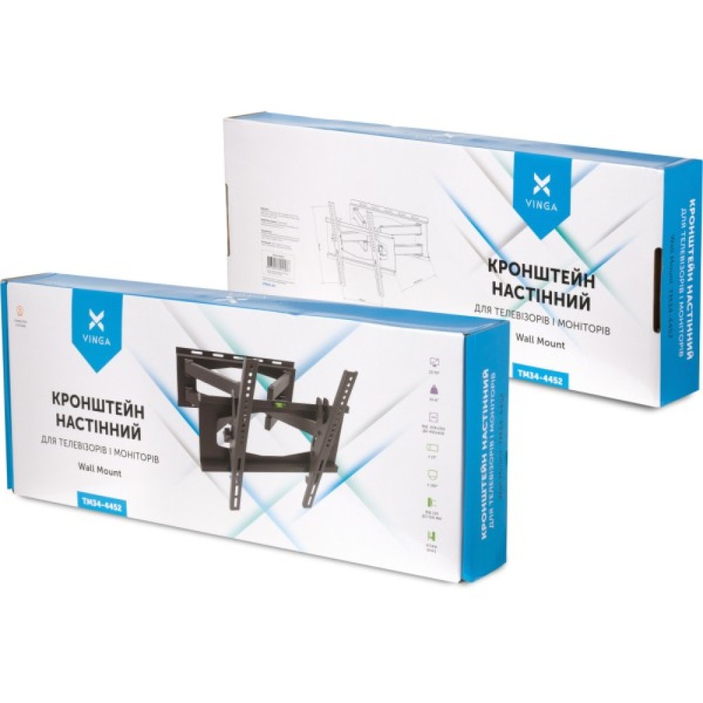 Цей кронштейн стане незамінним у вашій домівці, якщо ви цінуєте витончений дизайн, який прекрасно впишеться в будь-який інтер'єр, а також прагнете отримати максимум зручності від перегляду улюблених програм і фільмів. Продукти Vinga завжди відповідають сучасним трендам і вимогам, поєднуючи технологічні інновації та естетичну привабливість за доступною ціною. Обираючи Vinga TM34-4452, ви отримуєте гарантію високої якості та задоволення від користування.