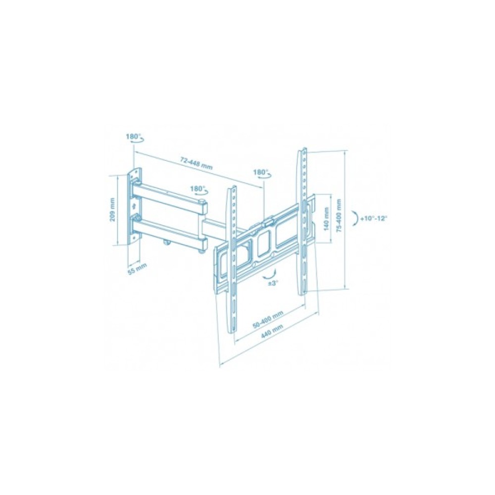 Унікальною особливістю цього кронштейна є його 4 ступені свободи, що дозволяють вам з легкістю встановлювати необхідний нахил до 15° та досягати повороту до 180°. Це дає можливість насолоджуватися улюбленими фільмами чи програмами з будь-якого кута приміщення, не залежно від конфігурації вашої кімнати. Така мобільність розташування телевізора підходить для різнопланових інтер'єрів, пропонуючи безліч варіантів розміщення.