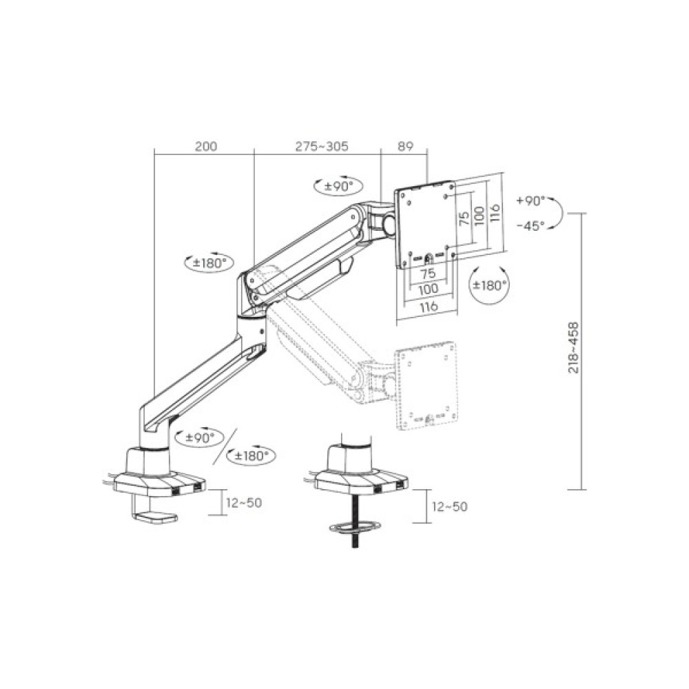 Встановлення кронштейна відбувається виключно на стіл, що економить простір та забезпечує стабільність конструкції. Стандарт VESA 75 x 75 і 100 x 100 робить кронштейн сумісним з багатьма моделями моніторів, що додає універсальності та зручності у використанні. У комплекті ви знайдете детальну інструкцію та всі необхідні елементи кріплення, що дозволяє швидко та безпечно встановити кронштейн без додаткових зусиль та спеціального інструменту.