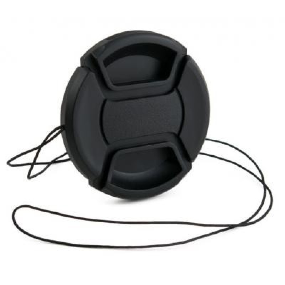 Захисна кришка об'єктива універсальна і підходить для стандартного об'єктива, універсального об'єктиву, телеоб'єктива, ширококутний об'єктив. Зручна конструкція пружинних внутрішніх затискачів дозволяє надійно встановити кришку в передню частину об'єктива або в різьбу для установки світлофільтрів. Таким чином, різьблення на затискачах кришки увійде в зачеплення з різьбленням на об'єктиві (світофільтрі) і кришка надійно зафіксується. Кріплення до фотоапарата: (нейлоновий шнурок, 30 см).