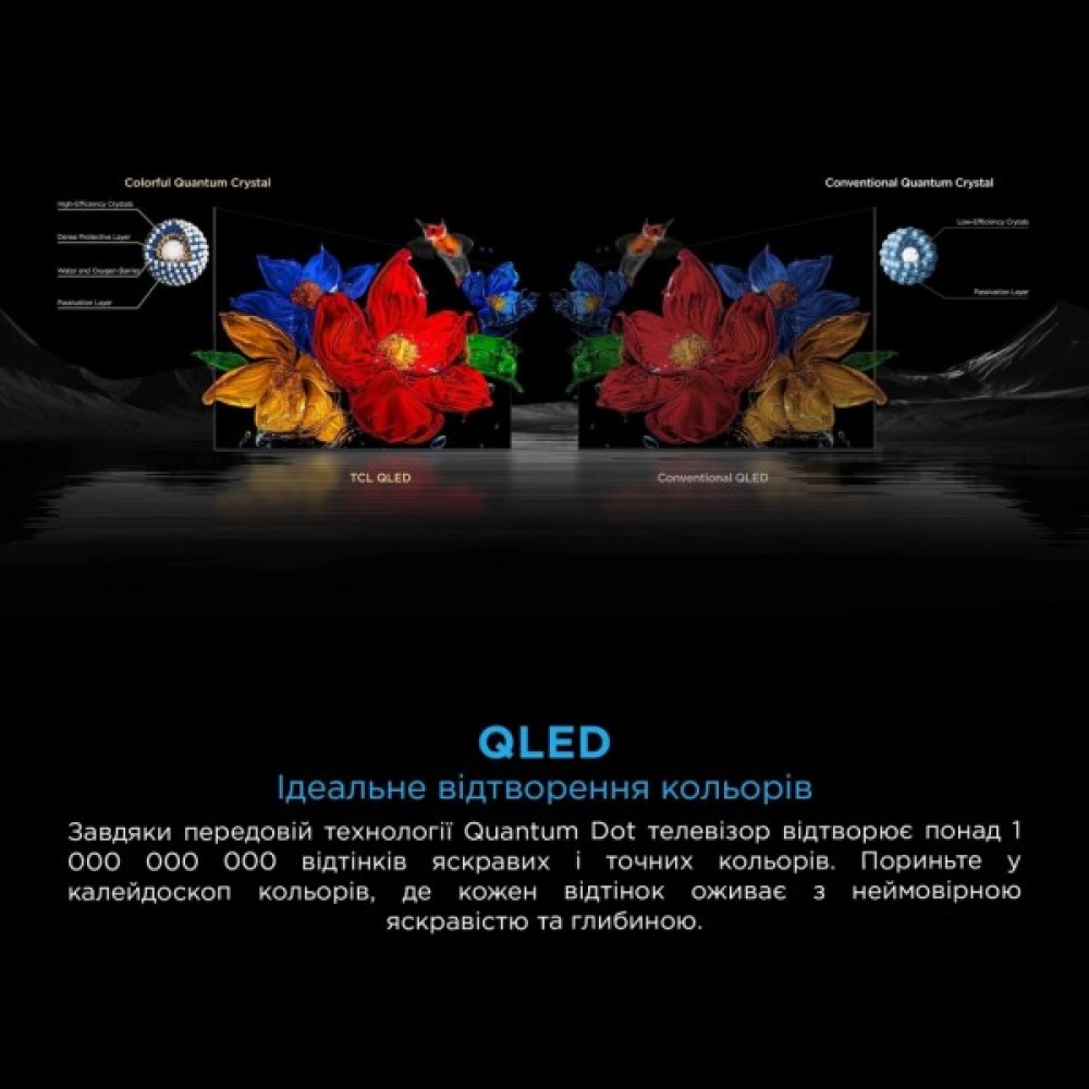 Телевізор TCL 98C7K — це втілення передових технологій та естетичного дизайну, що забезпечує бездоганну якість зображення та звуку. Розкішна діагональ у 98 дюймів у поєднанні з ультратонкими рамками створює ефект безмежного зображення, надаючи інтер’єру вишуканості та стилю.