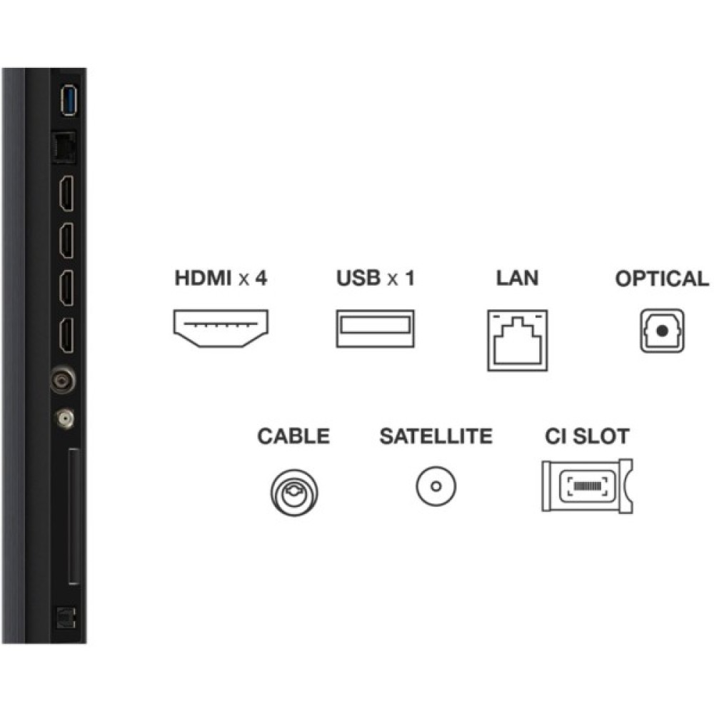 Інтерфейси підключення включають 4 x HDMI, 1 x оптичний аудіо, USB та RJ-45, забезпечуючи максимальну гнучкість у виборі додаткових пристроїв і додаткових можливостей.