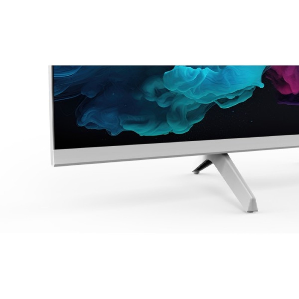 Сучасний дизайн телевізора доповнюється елегантними ніжками для надійної фіксації, а його безрамкова конструкція чудово виглядає у будь-якому інтер'єрі, підсилюючи враження від перегляду.