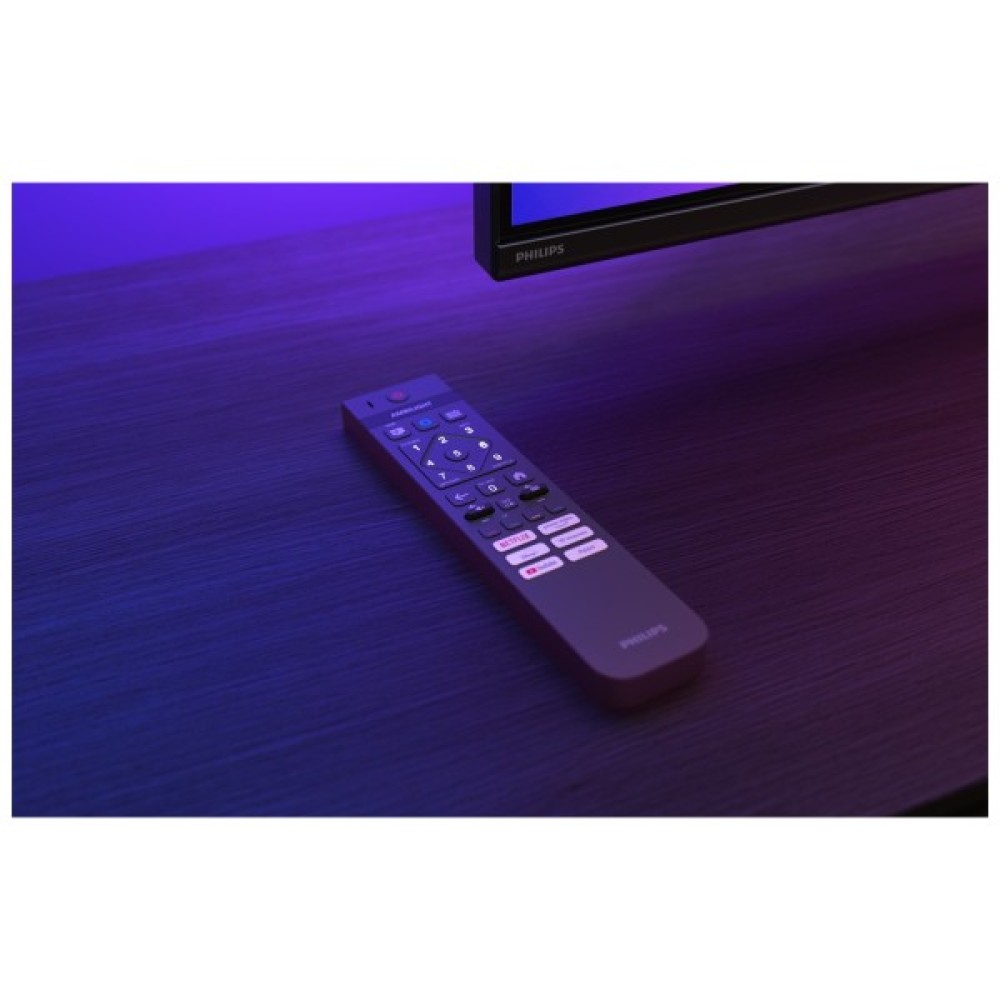 Технологія Ambilight надає перегляду особливої атмосфери, проектуючи кольори екрана на стіни навколо телевізора. Це робить перегляд настільки захопливим, що ви відчуєте себе частиною подій на екрані. Процесор зображення P5 Perfect Picture Engine забезпечує бездоганну реалістичність сцен, підтримуючи технології поліпшення, такі як CalMAN та Game bar, що робить картину максимально чіткою і природною.