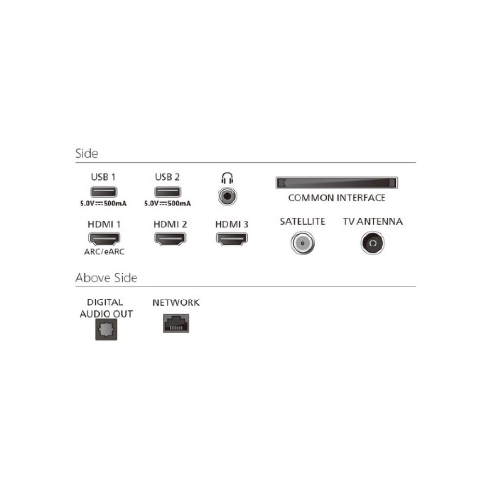 Інтерфейси підключення включають 3 x HDMI, 2 x USB, 1 x RJ-45, CI слот та антений вхід, а також вбудований Wi-Fi та Bluetooth, що дозволяє легко підключити телевізор до ваших улюблених пристроїв і інтегрувати його у систему розумного дому з підтримкою платформ, таких як Matter Smart Home, Amazon Alexa та Apple AirPlay.