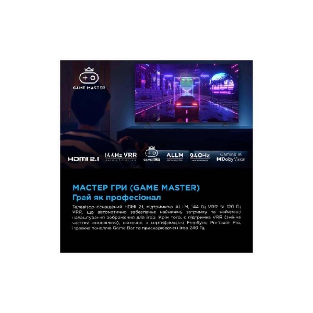 Тип телевізора: Smart TV; з Wi-Fi; Mini LED - телевізор; 4K-телевізори
