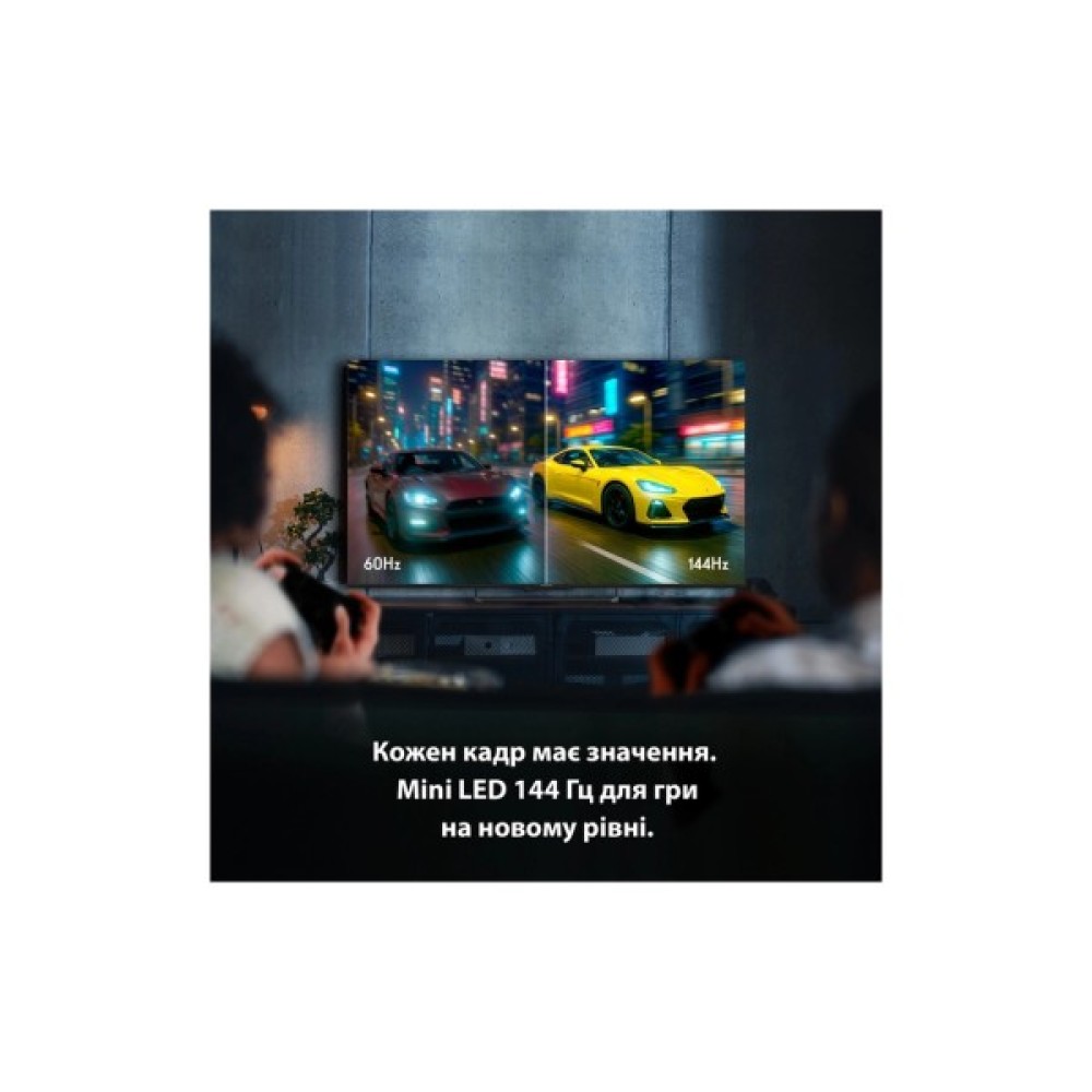 Динамічність і плавність рухів на екрані забезпечуються частотою розгортки 144 Гц, що робить цей телевізор ідеальним для перегляду спортивних подій чи відеоігор. Підтримка HDR дозволяє насолоджуватися навіть найдрібнішими частинами зображення у форматі HDR 10 та Dolby Vision. Телевізор оснащений технологіями ECO, Adaptive Deinterlacing, та Dynamic Noise Reduction для зменшення шумів і максимального покращення якості зображення.