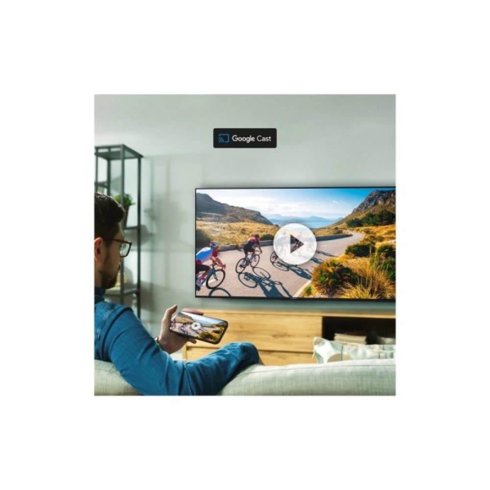 Телевізор підтримує функцію Google Cast, що дозволяє транслювати контент з вашого смартфона, планшета чи ноутбука прямо на екран. Звукове оформлення на найвищому рівні завдяки вбудованому сабвуферу, який підсилює баси, та Dolby Atmos, що створює реалістичний об'ємний звук.