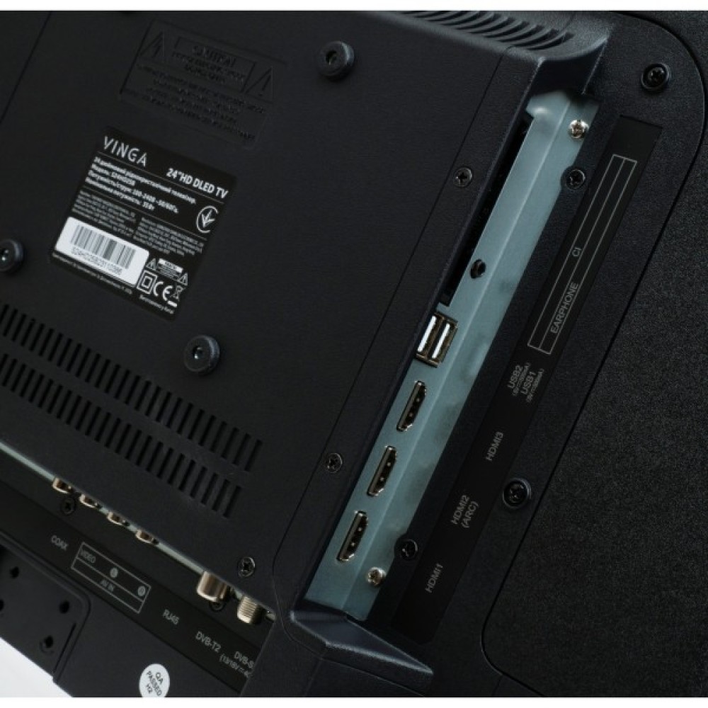 Vinga S24HD25B має чорний корпус, що ідеально впишеться в приміщення з будь-яким дизайном. Крім того, вага телевізора без підставки – всього 2,1 кг. Ви без проблем зможете поставити його на тумбу або почепити на стіну, скориставшись кріпленням VESA.