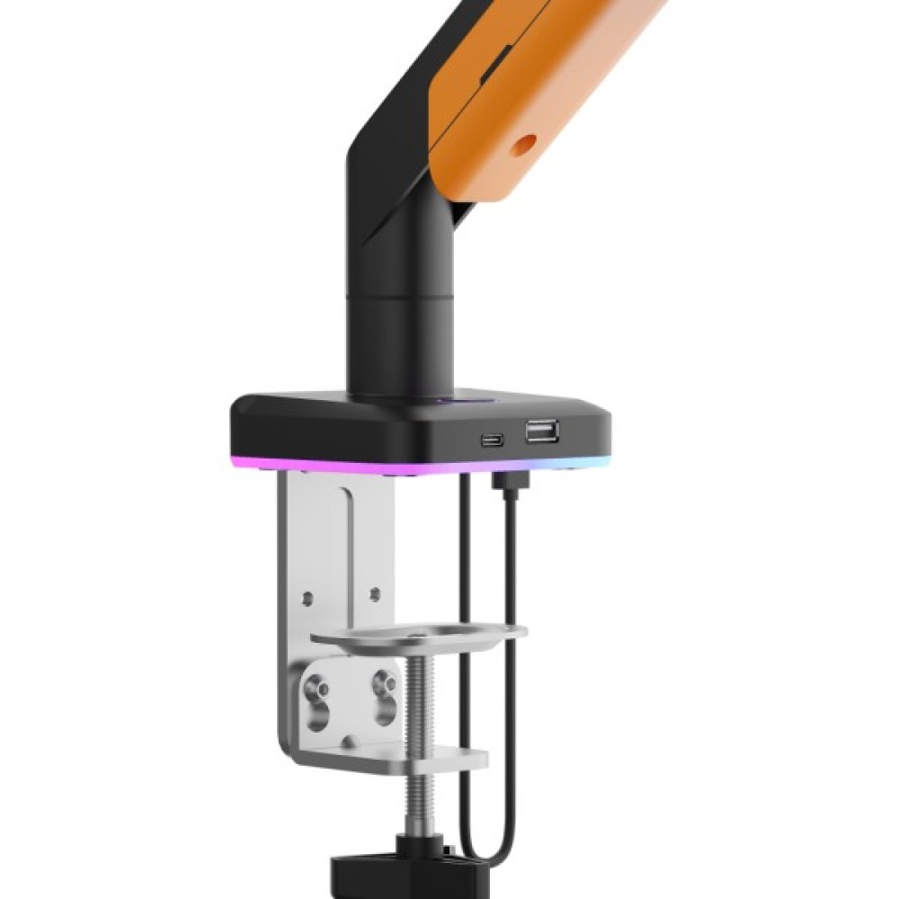 Крім того, кронштейн підтримує сучасні інтерфейси type-C та USB-A, додаючи зручність до вашого повсякденного робочого процесу. Але справжньою окрасою є RGB-підсвічування, яке підкреслить вашу індивідуальність. З 31 режимом підсвічування ви зможете налаштувати атмосферу відповідно до вашого настрою, створивши ідеальний робочий або ігровий простір.