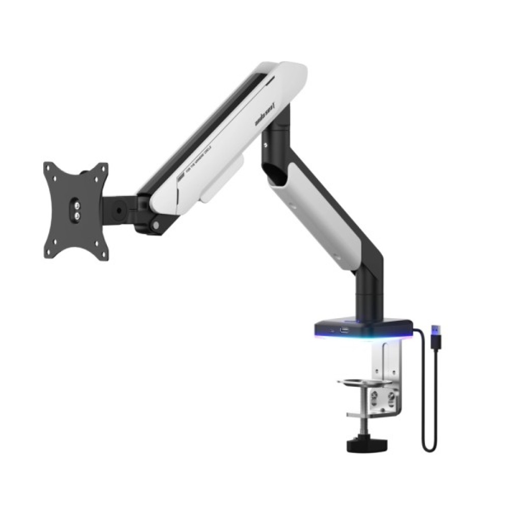 Однією з ключових особливостей цього кронштейна є наявність вбудованого USB-концентратора, який значно спрощує підключення та організацію ваших пристроїв. Це незамінна перевага для тих, хто використовує декілька гаджетів одночасно. Завдяки системі прокладки кабелів із прихованим укладанням дротів, ваш робочий стіл завжди буде виглядати акуратно та організовано, без плутанини кабелів.