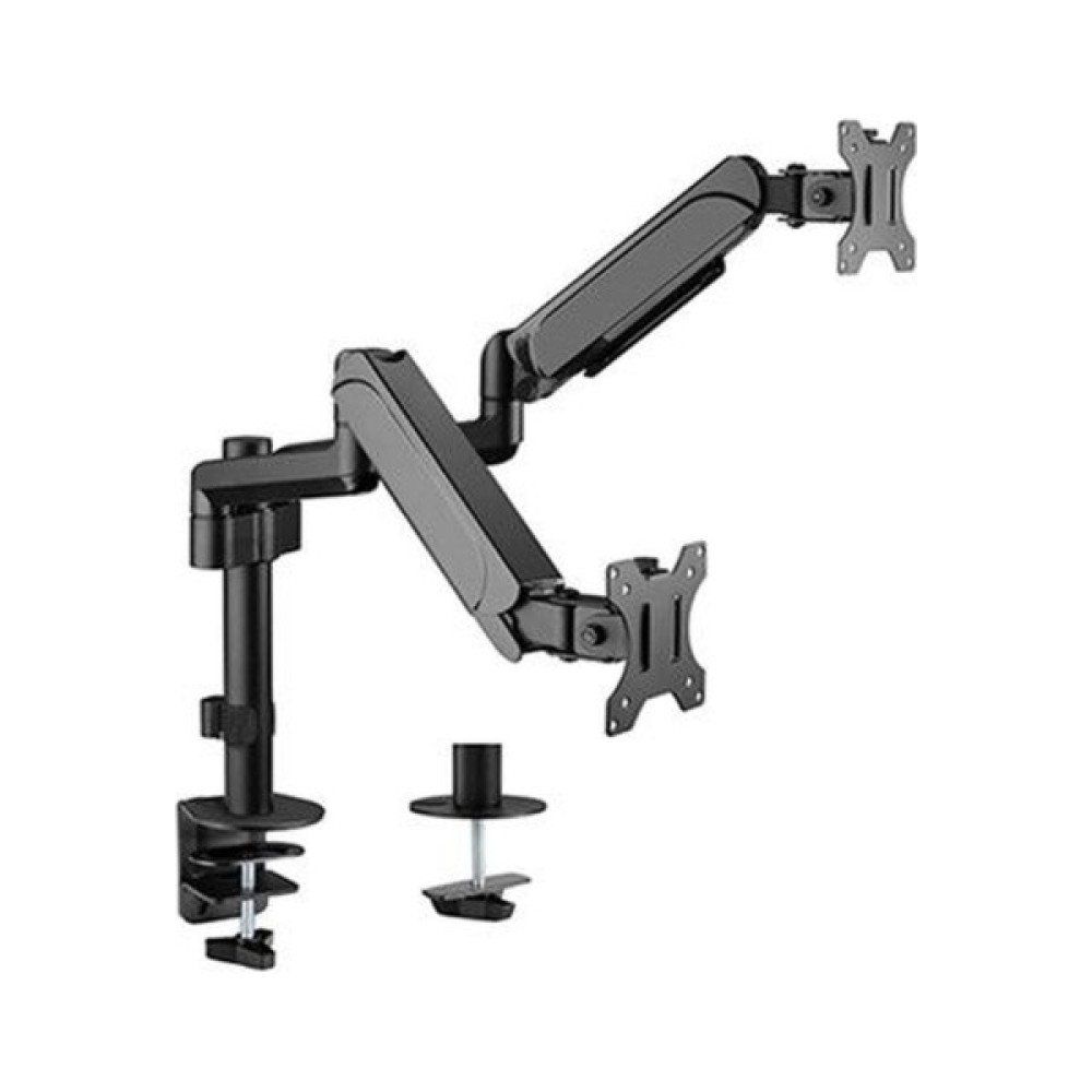 Кронштейн Gembird MA-DA2P-01 виготовлений з міцної сталі, алюмінію та пластику з порошковим покриттям, що забезпечує йому тривалий термін служби та вишуканий вигляд. Чорний колір конструкції легко впишеться в будь-який інтер'єр, надаючи йому стиль та сучасність. Сумісний зі стандартами VESA 100 x 100 мм та 75 x 75 мм, цей кронштейн підходить для монтажу моніторів з діагоналлю від 17" до 32" і витримує максимальне навантаження до 9 кг.