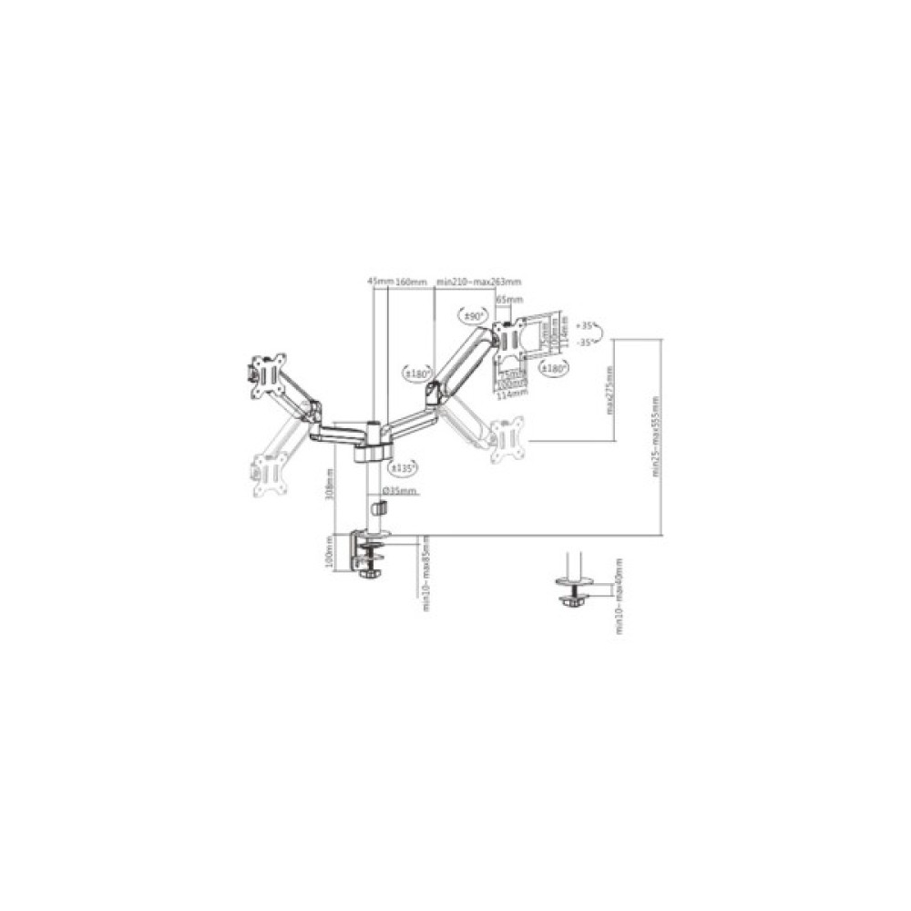 Головною перевагою цього кронштейна є поворотно-похилий механізм, що забезпечує максимальну гнучкість у налаштуванні. Він підтримує діапазон нахилу від +35° до -35°, а також обертання в межах +90°~-90°, що полегшує налаштування оптимального кута для зорового комфорту. Крім того, можливість повного обертання на 360° дозволяє без зусиль змінювати орієнтацію монітора з альбомної на портретну, що ідеально підходить для різноманітних задач, від роботи з текстами до перегляду графіки.