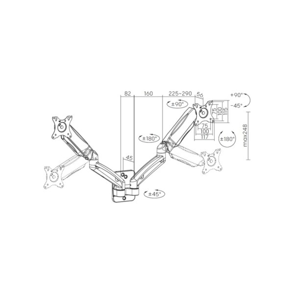 Ця модель дозволяє регулювати кут нахилу від +90° до -45°, що дає змогу змінювати позицію монітора за бажанням. Здатність до обертання на 180° забезпечує незрівнянну ергономічність у підстроюванні нахилу. Ви зможете з легкістю налаштувати оптимальний кут перегляду для різних завдань, незалежно від того, чи ви працюєте з текстами, чи для точності потрібно дивитися на графіки або відео.