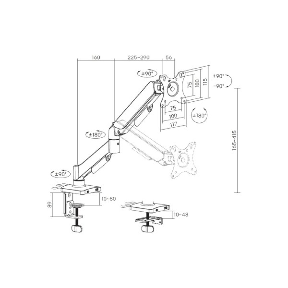 Максимальна підтримувана діагональ екрана становить 32 дюйми, а підтримка різноманітних діагоналей від 17" до 32" забезпечує універсальність використання. Використання стандарту VESA 100 x 100, 75 x 75 забезпечує безперешкодну сумісність з більшістю сучасних моніторів. Кріплення витримує навантаження до 9 кг, що говорить про його міцність та надійність.