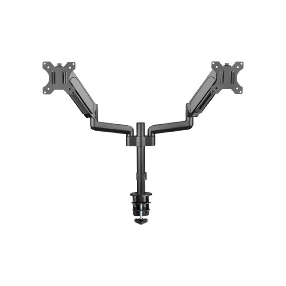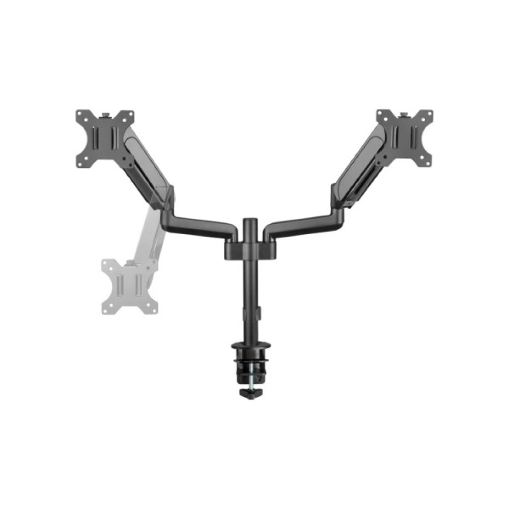 Кронштейн підтримує монітори з максимальною діагоналлю до 32 дюймів, з можливістю кріплення різних розмірів екранів – від 17" до 32". Він легко встановлюється на стіл, даруючи свободу у виборі позиції робочого місця. Кронштейн також дозволяє одночасно розташувати два монітори, що створює додаткові зручності для мультитаскінгу.