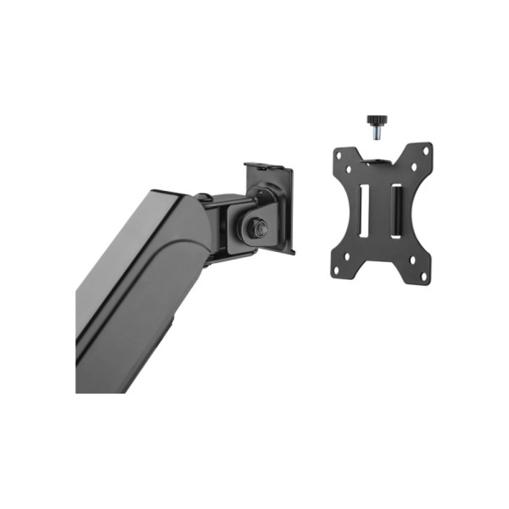 Завдяки конструктивній сумісності зі стандартами VESA 100 x 100 та 75 x 75, кронштейн є універсальним рішенням для більшості сучасних моніторів. Крім того, він витримує максимальне навантаження до 9 кг, забезпечуючи надійну підтримку навіть масивних моделей.