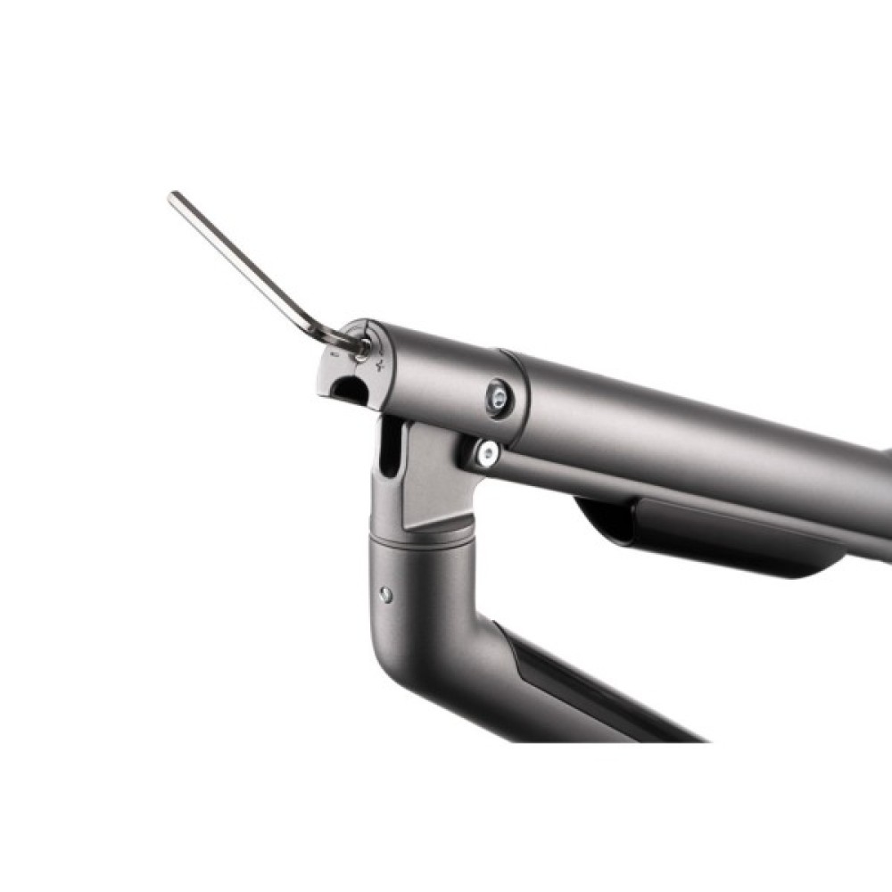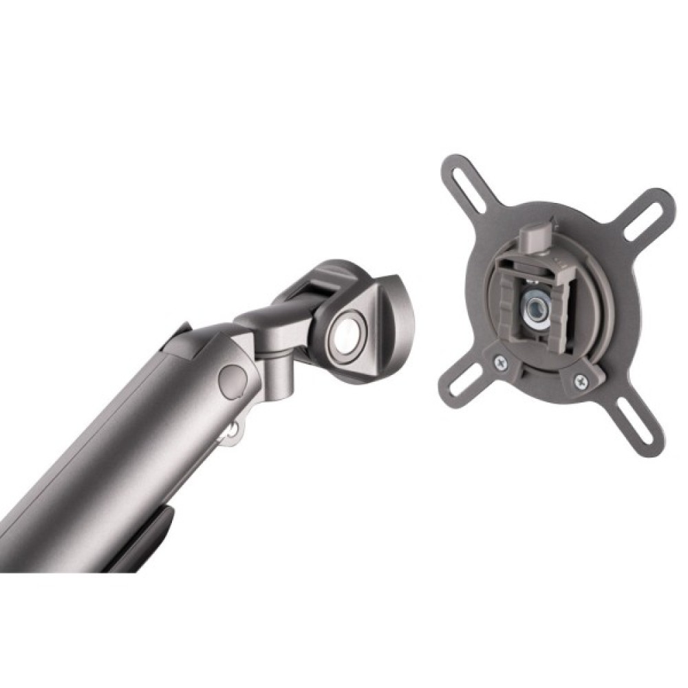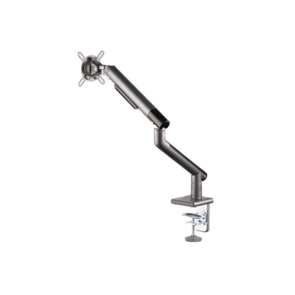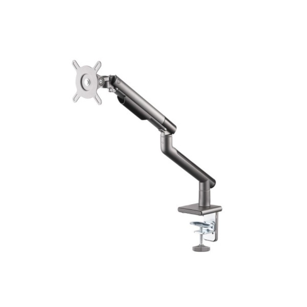 Особливої уваги заслуговує система обертання, яка забезпечує можливість повороту на 180°, що робить цей кронштейн ідеальним для презентацій або спільної роботи. А система прокладки кабелів допомагає підтримувати порядок на вашому робочому столі, запобігаючи заплутуванню кабелів.